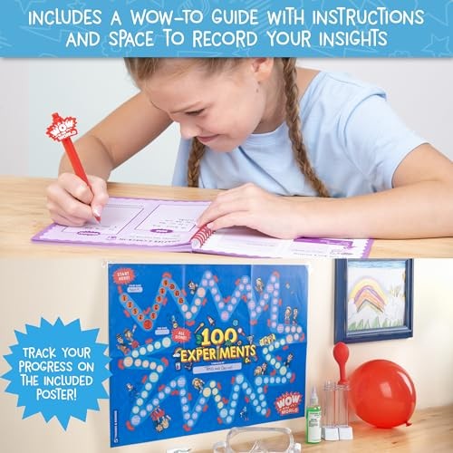 • INTERACTIVE MANUAL FOR EXTENDED LEARNING: The kit’s 96-page illustrated “Wow-To Guide” not only takes kids through each of the 100 experiments, it also doubles as a write-in science journal with prompts to keep kids thinking and space to record their observations