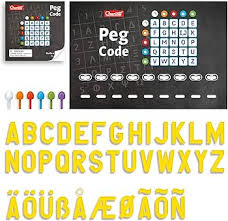Use pegs and letters to write and decode secret messages with the new Peg Code. Think of a secret word and write it in code, using the special alphabet made up of coloured pegs. You can challenge your friends to see who decrypts the code first. The set contains cards with different alphabets, so you can have fun creating peg codes different languages.