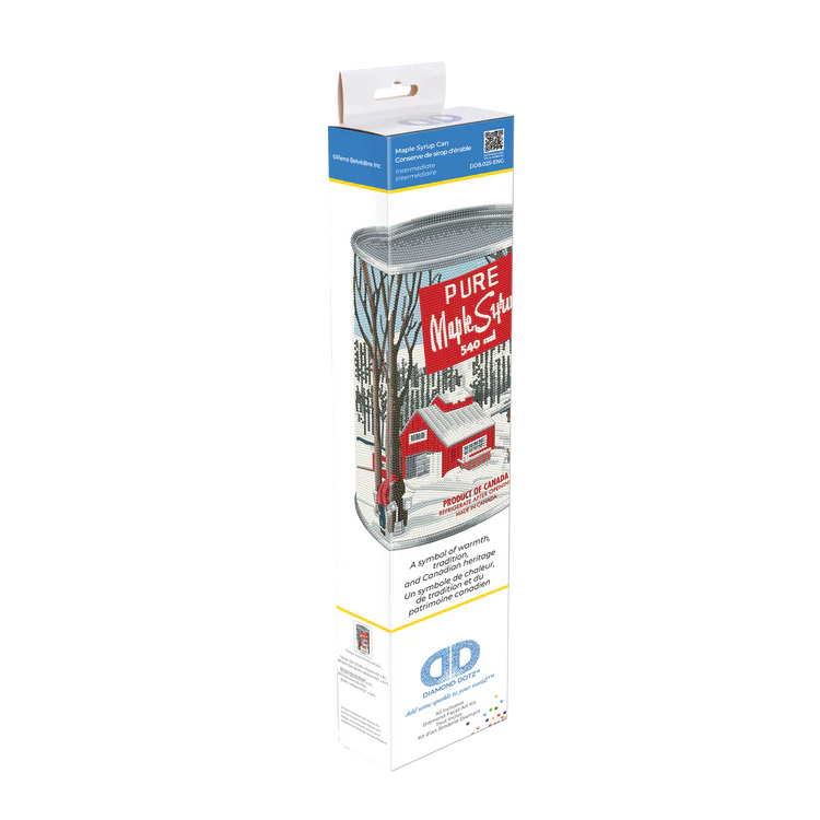 Diamond Dotz canvas featuring a can of Canadian maple syrup, the country's true emblem. In addition to offering a creative and relaxing activity, this design pays tribute to a symbol of warmth, tradition and Canadian heritage. Perfect for craft enthusiasts and lovers of Canada, it's a dazzling work of art that will proudly decorate your home.
