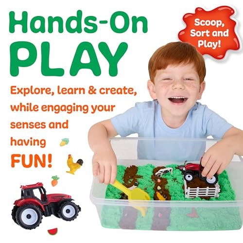 This all-in-one sensory bin is full of hands-on fun and creative exploration! Kids can scoop, sort, and plant mini crops in soft green and brown sand that never dries out. From raking pretend dirt to harvesting carrots and corn, and explore textures that support fine motor skills, sensory development, and screen-free fun anytime, anywhere