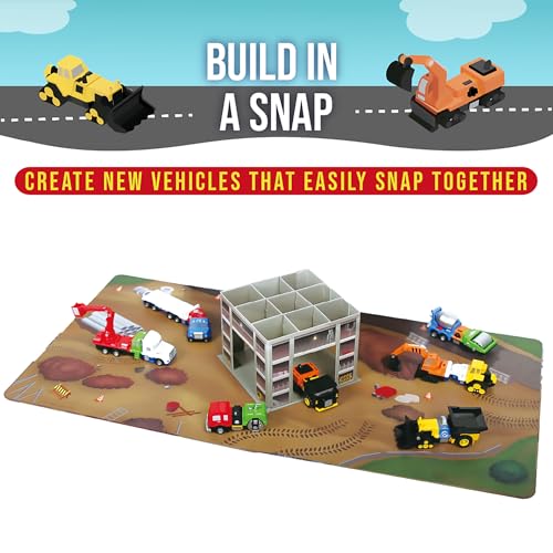 • Unlock Imagination: Have your own construction crew and create your ultimate construction site with this vehicle toy set. Includes 21 pieces to create hundreds of possibilities!
