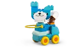 Boost toddlers’ creativity with the 3in1 Animals on Wheels (10448) building toy. Little animal lovers will find countless ways to enjoy imaginative play as they build the duck, fish or dog toy for preschool kids, or even create all-new animals! Preschool kids who love LEGO® DUPLO® vehicle toys build their figures on a wheelbase and can enjoy sending their animals zipping along or pulling them along with the handle.